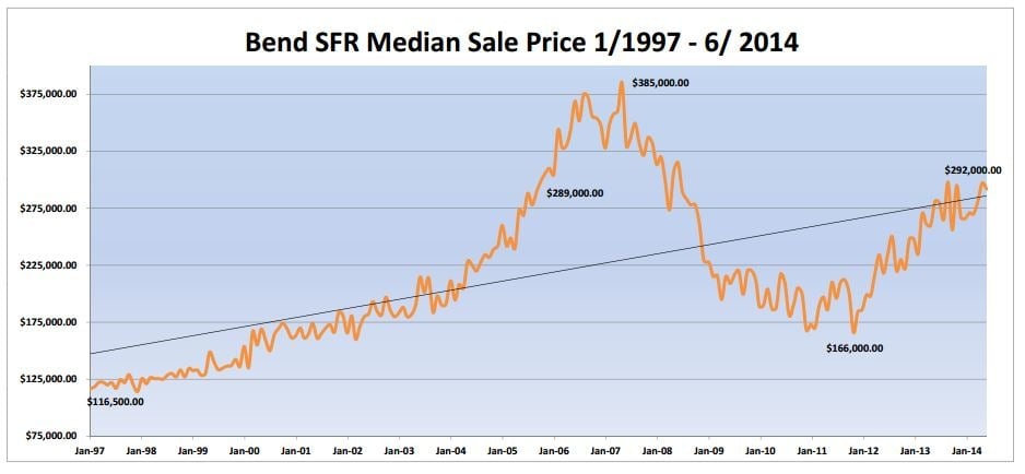 Well, it is kinda like it never happened. That is...the over-inflated days of the early 2000s, the epic real estate crash across the nation, and the rapid recovery the last 24 months! One question I have been asked recently from buyers is, “Did I miss the recovery?” and “Is the market a bubble and prices too high again?” My honest answer is “Absolutely not!” This graph shows why. If you were to remove the non-typical cycles I referred to above, we are back on track as if the market had followed the 100-year historical trend of 5-6% appreciation. If we have another 25% appreciation year we will once again trend above the average, but right now we are in the sweet spot. The first two quarters of 2014 have slowed in appreciation rates and look close to the 100 average.