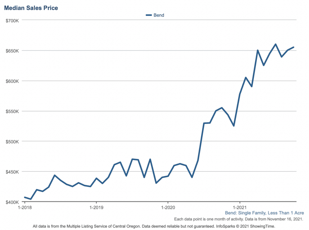 According to MLS data, the median home price continues to hang close to the highs from earlier in the year and was $655,000 in October. This places us 18% higher than where we were last October and 17% higher than where we were in January. It is important to remember that there were times earlier in the year the median price was up 40%, or more, from the same point last year. Seeing this number work its way back down is healthy. We would love to see this continue to normalize and head to lower single-digit returns over the next 12-month period.