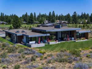 Located in the heart of Tetherow Resort resides this modern estate with sweeping Cascade Mountain views. From the moment you enter the enclosed courtyard, you’ll be struck by the attention to detail that Eric Meglasson of Pique Collaborative Architects put into designing this innovative estate. The concept of integrating indoor & outdoor spaces is well-achieved through floor-to-ceiling windows, skylights, cedar-slated walls, and an indoor/outdoor fireplace.