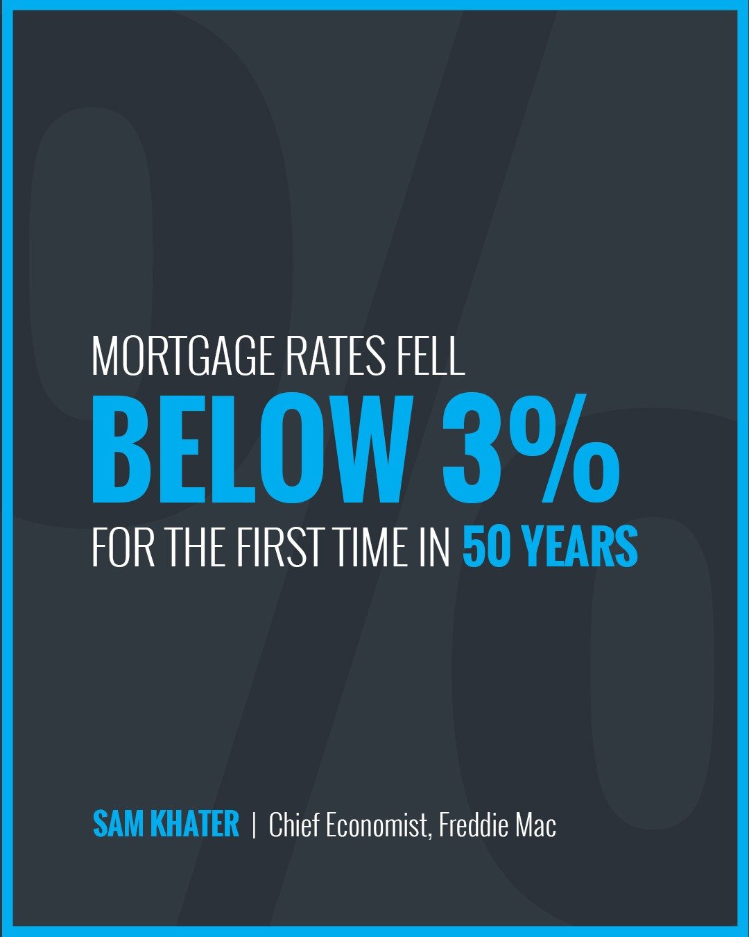 • Mortgage rates hit another all-time low, falling below 3% this week.