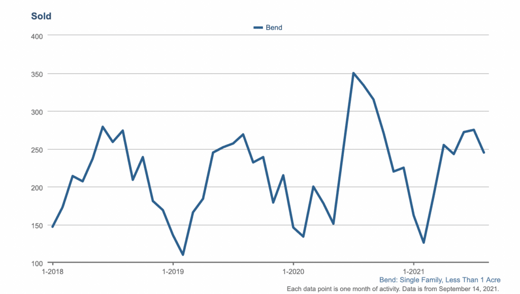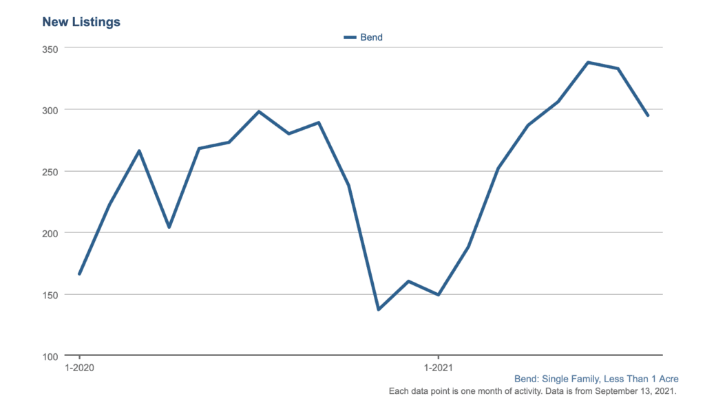 The time that the average listing spends on the market before going Pending is also suggesting a stabilization in the market. According to MLS data, it is now taking on average 14 days for homes in Bend to go Pending. This is up from 10 days in July and has ticked up each month since May. If we look at the median days on market, although this has ticked up too, this number has remained under one week for almost a full year. What does this discrepancy mean? Without getting too far into the “statistics” weeds, it means there are a lot of homes selling extremely quickly, but that things seem to be shifting.