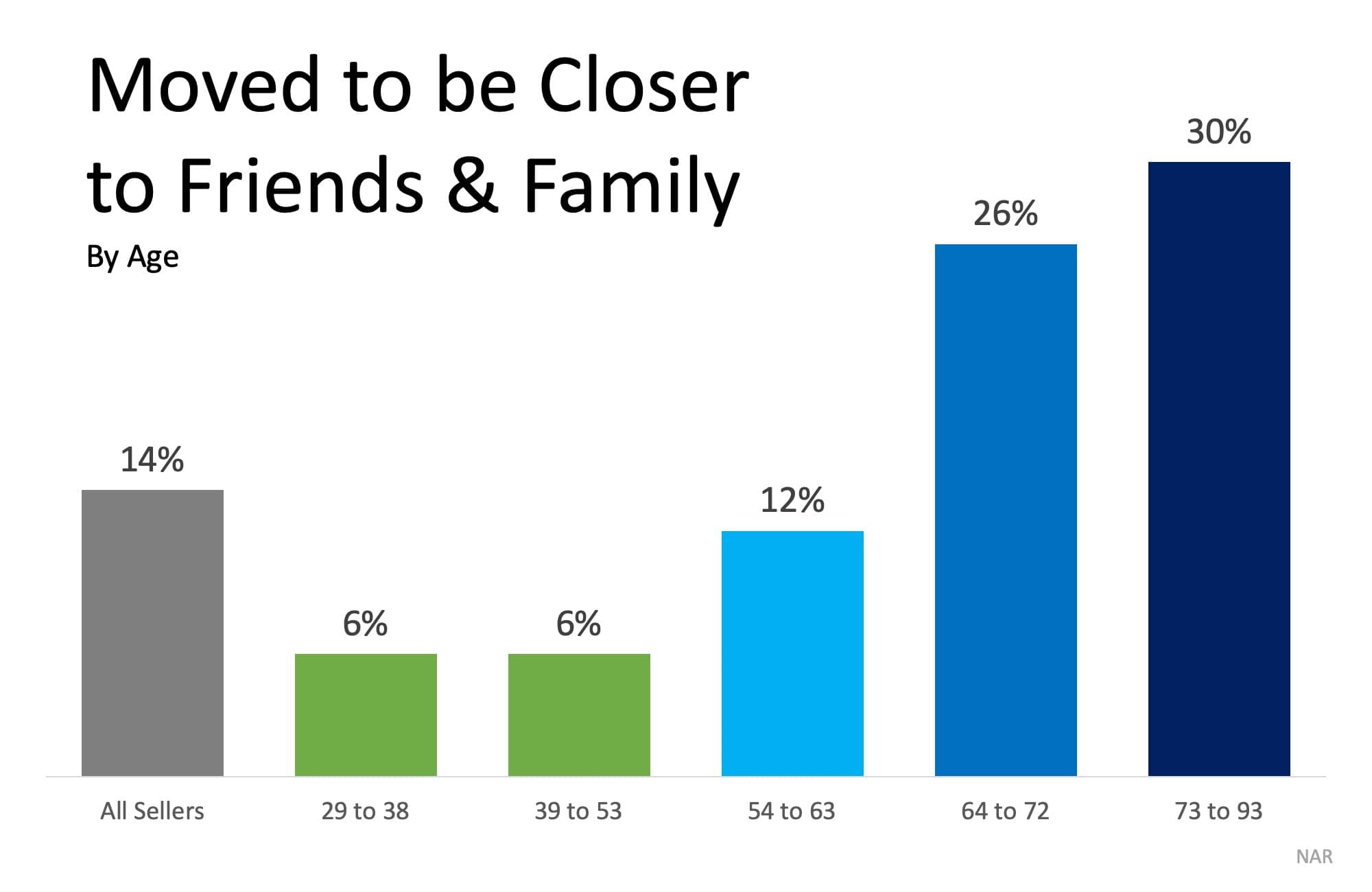 For homeowners over the age of 64, wanting to be closer to friends and family served as the top motivator to move. Downsizing to a smaller home or moving due to retirement came in as a close second and third.